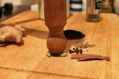 - Grind the seeds of the cardamom pods, clove, cinnamon and fennel seeds in a coffee grinder. Alternatively, you can bash them into dust with a rolling pin on a wooden board or with a pestle and mortar.