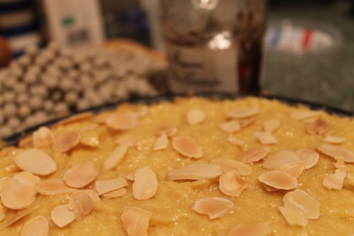 - Mix the butter and sugar together. Then add the eggs + egg yolk one by one, then the coconut, then the ground almonds and lastly the almond essence.