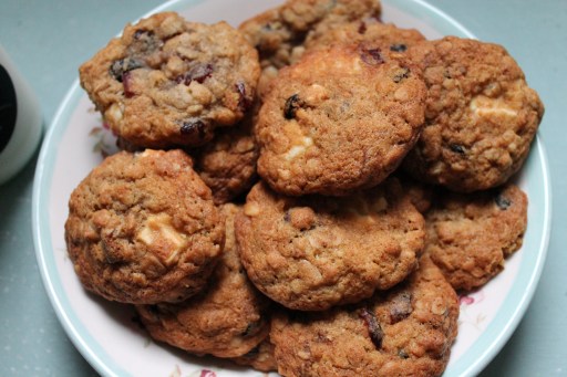 So we only break these out only in extreme circumstances. This is a version of our favourite oatmeal cookie recipe that we’ve been making (and eating) since we were 14 and it hits the spot every time. This time, to bring us into autumn, we’ve added dried blueberries, dried cranberries, cinnamon and white chocolate. Mmmm!