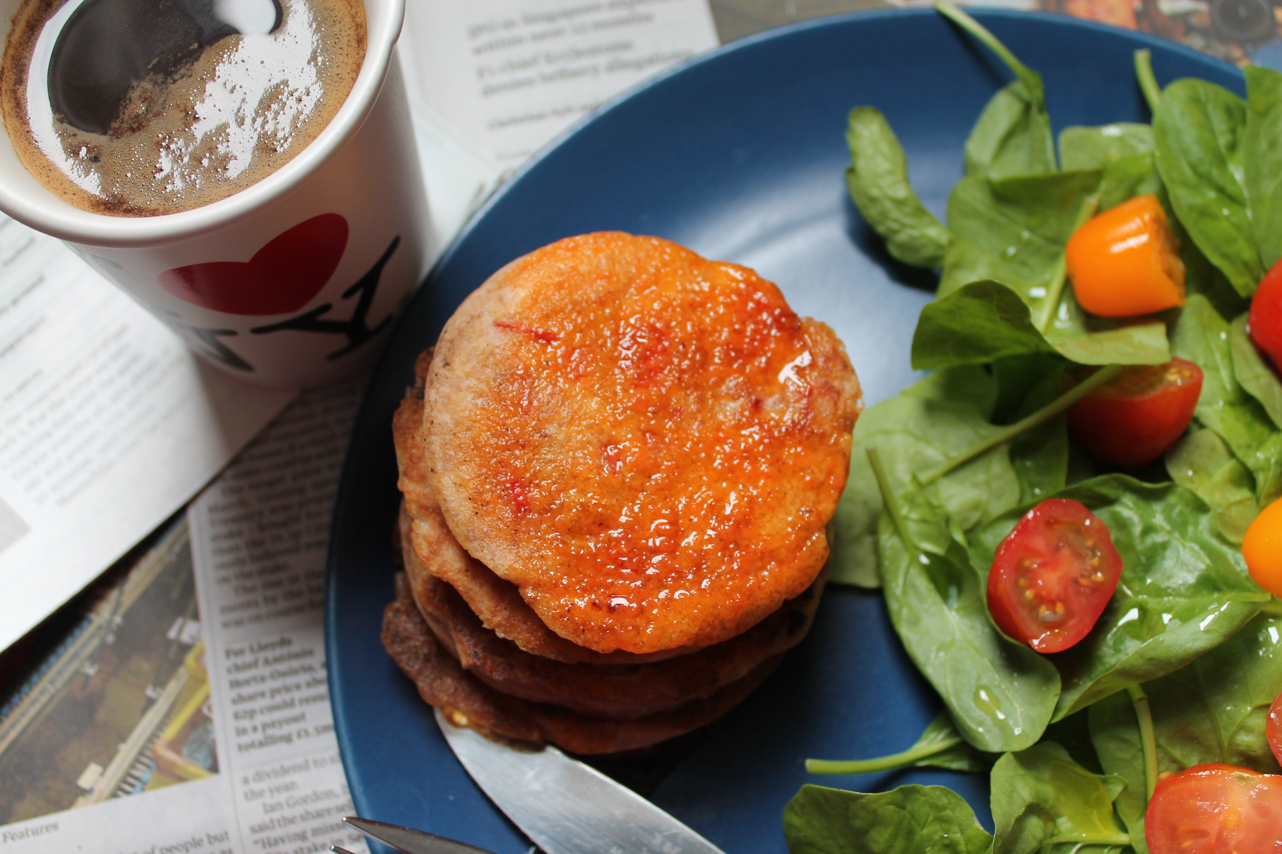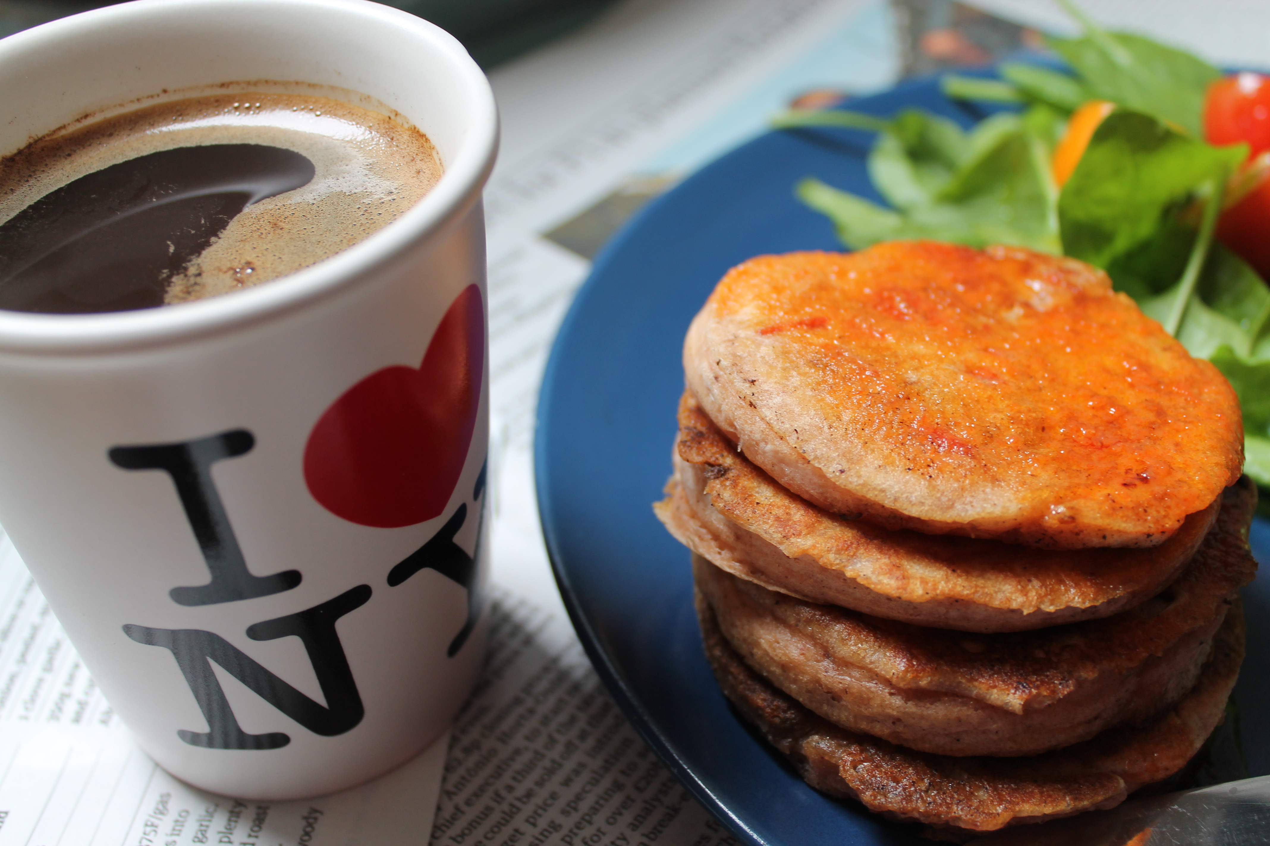 We’re off to New York soon, which is one of our favourite cities in the world! It has such a buzz about it and from a foodie perspective, it’s super exciting. One of the places we love is the Clinton Street Baking Company which serves up beautiful, massive, fluffy pancakes for breakfast. Mmmm, carb heaven. To get us into the NYC vibe, we thought we’d come up with our own version of those pancakes – but make them savoury! These beauts are stuffed with feta cheese and red pepper, and just as fluffy as their inspiration. Make these with a side salad and a cup of coffee and you’ve got a wonderfully virtuous start to your day!