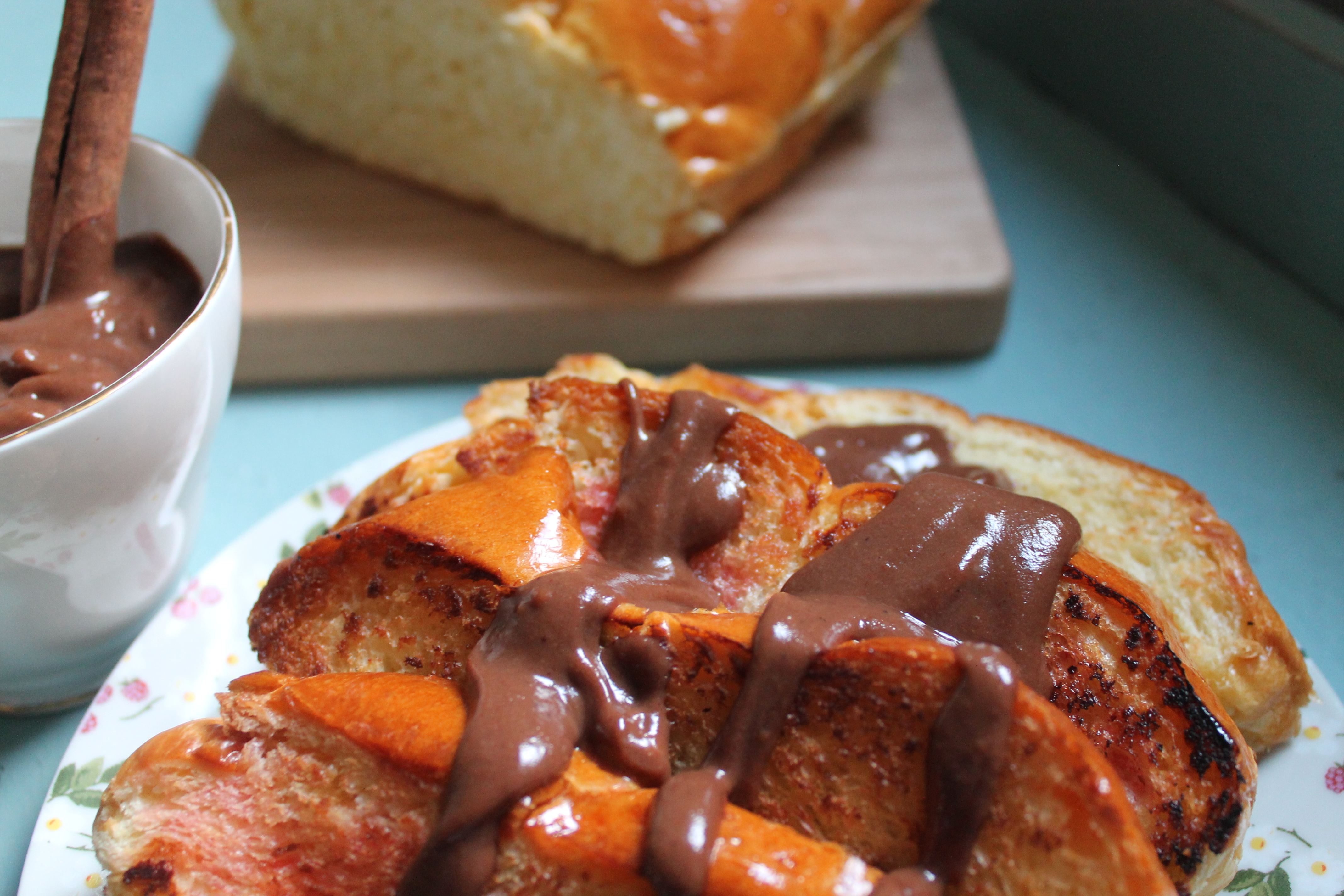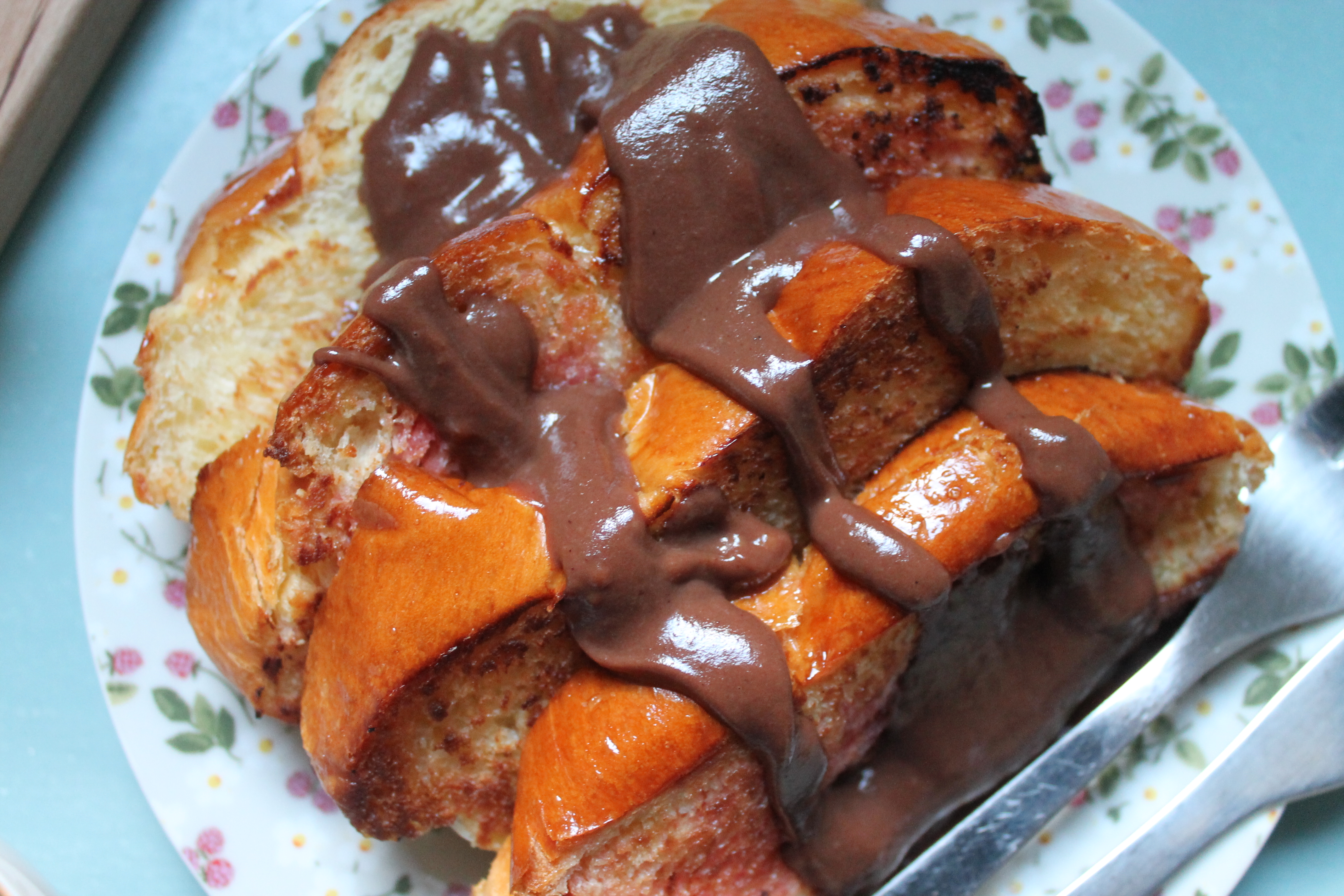 - Pour the chocolate custard over the brioche slices and enjoy immediately!