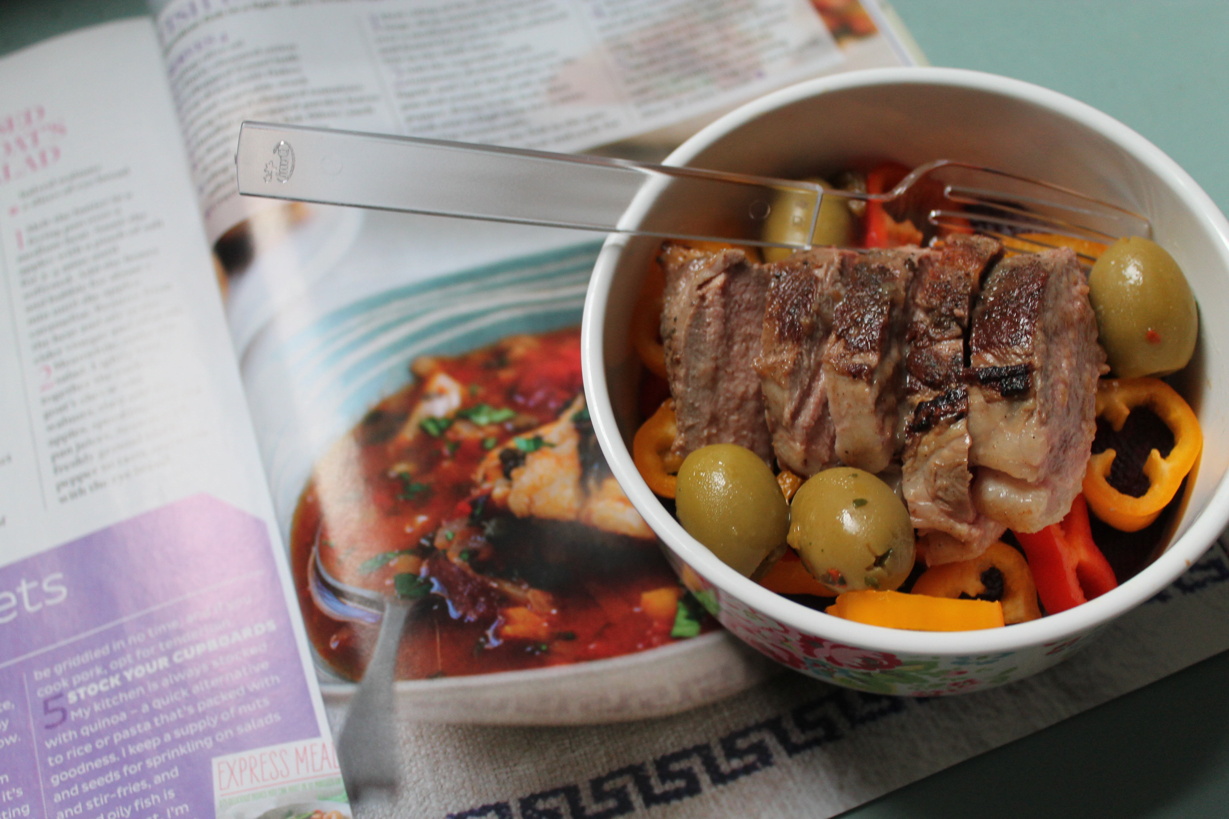 Take this duck salad for example: slices of duck, glazed with date and orange marmalade and cooked gently. Thrown together with crisp yellow and red mini peppers, beetroot and olives. It might be cold and rainy outside, but if you shut your eyes you could be somewhere sunny for a few moments. For a few moments, you can forget it’s just a Tuesday.