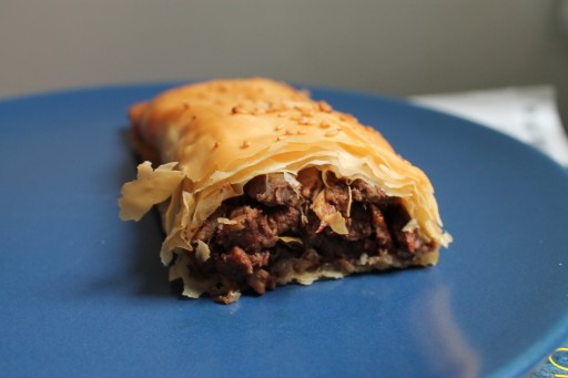 But when we decided to make them, we used the leftover filo when we made our Chicken, Fig Jam and Goat’s Cheese Parcels and decided to fill the burek with shredded Indian-spiced lamb leftover from our Easter Raan (frozen in the meantime). We didn’t twist the burek because we’re really not that dexterous – it’s so much easier to make a pasty-like shape. The result was super easy and yummy burek for dinner! And we like to think that because we used filo, they’re not too bad for you. (Though it’s a good idea to pair it with a side salad just in case!)
