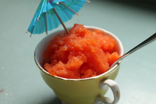 Just like a beautiful Jamaican papaya we bought recently. Frozen to the core. So sad. So normally with vegetables it’s not a big deal as we can use them in a soup. And with other fruit, we throw them into one of our smoothies. But we really wanted to be able to taste the papaya, so we decided to turn it into a granita – perfect for summer right now! Now – full disclosure – we don’t usually go for granita or sorbets. We much prefer ice cream (as you know) and choosing granita/sorbet always seemed to us like you’re denying yourself what you really want. (Unless of course you hate/can’t consume dairy.) But as a Papaya Saver, it totally works.
