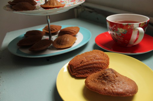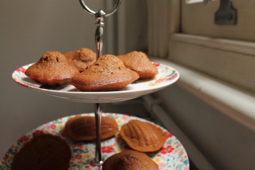 So we start with the best of intentions. We’re going to make madeleines the way they’re supposed to be made and they’re going to be wonderful. We’re not going to add any unconventional mix-ins or essences. We’re going to make classic French madeleines. So we start browning the butter to make beurre noisette just like our Leiths’s cookbook tells us to do. Then we keep reading and realise that we don’t like this recipe, we like David Lebovitz’s recipe. Then we realise we’ve run out of caster sugar. So we use dark brown soft sugar. Then we realise we do have caster sugar and it’s too late. But we keep going. And we end up with beautiful, brown, toffee-flavoured madeleines. Not like our childhood madeleines. Not the classic madeleines. But totally English and yummy. (We feel like the creator of the Bakewell pudding did when they messed up and produced something beautiful instead of what they were supposed to produce.)
